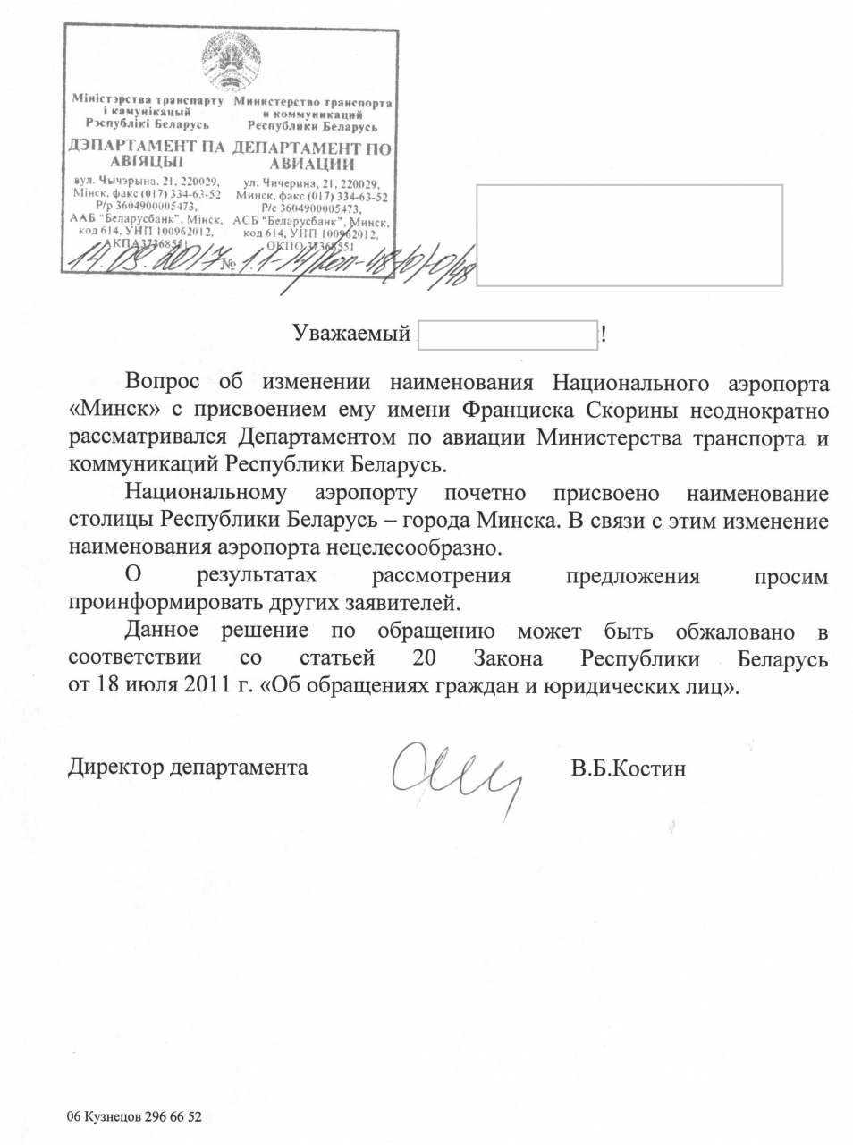 (Источник: http://www.belta.by/culture/view/vopros-pridanija-natsionalnomu-aeroportu-imeni-frantsiska-skoriny-mozhet-reshitsja-do-kontsa-goda-203411-2016/)