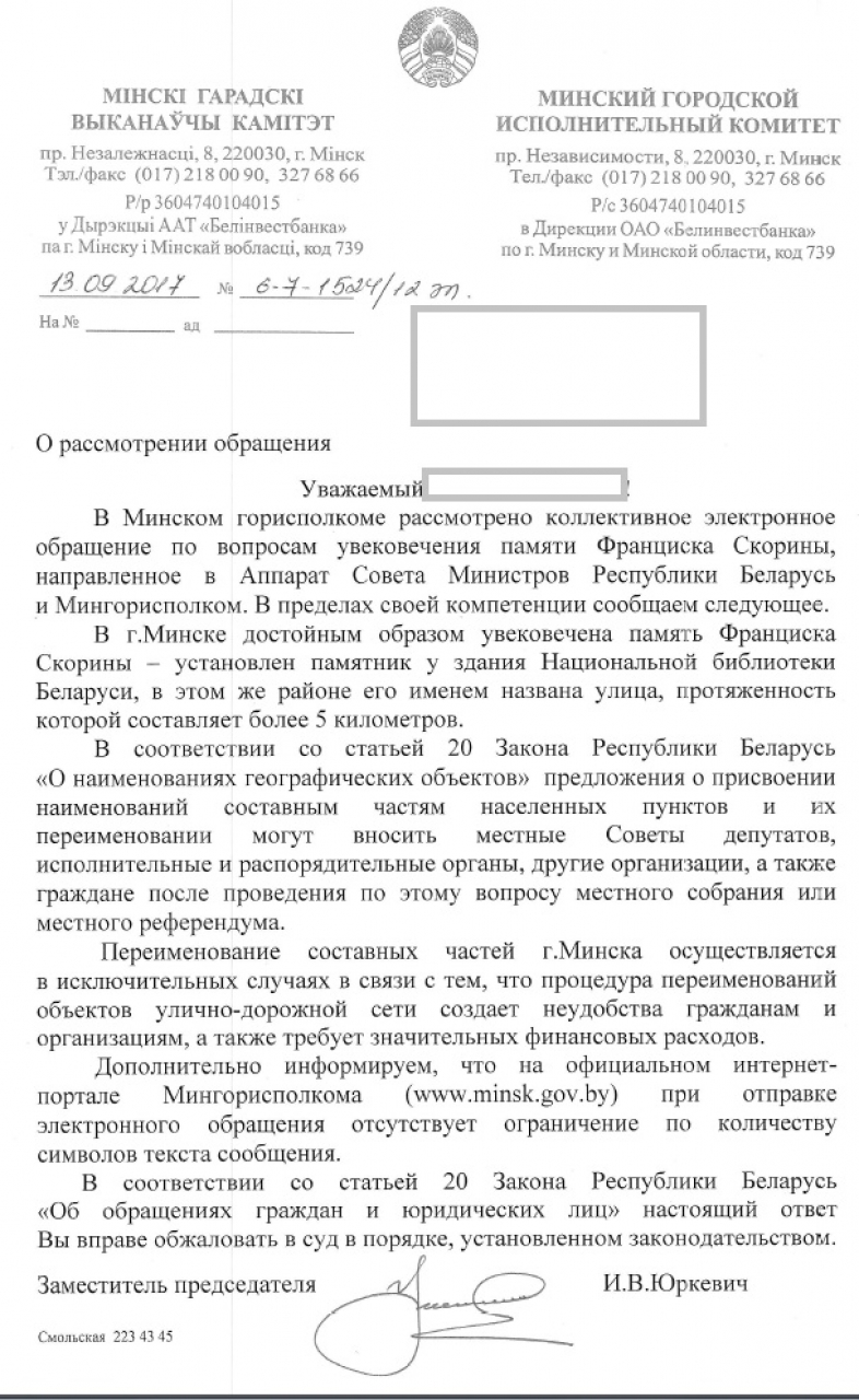 Мы, нижеподписавшиеся под данным коллективным обращением, требуем повторного рассмотрения поставленных вопросов и достойного увековечения памяти первого белорусского книгопечатника.