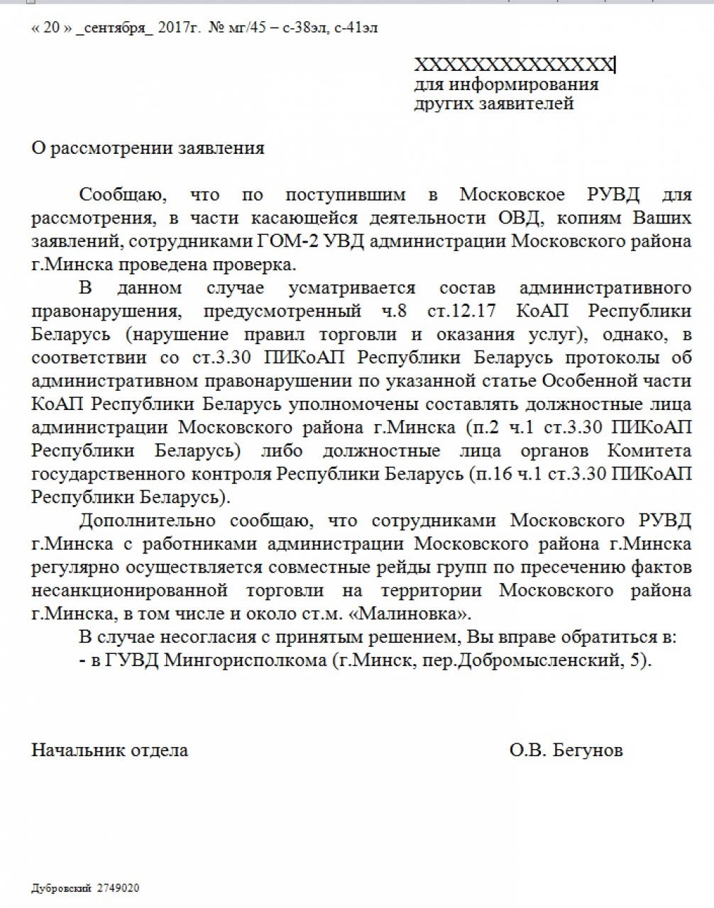 Сотрудниками Московского РУВД г.Минска с работниками администрации Московского района г.Минска регулярно осуществляется совместные рейды групп по пресечению фактов несанкционированной торговли на территории Московского района г.Минска, в том числе и около ст.м. «Малиновка».
