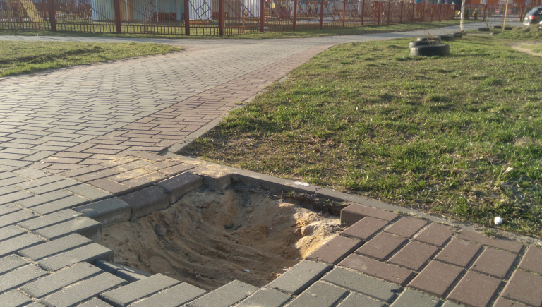Нарушение технологии укладки дорожного покрытия в одном из дворов Партизанского района г.Минска.