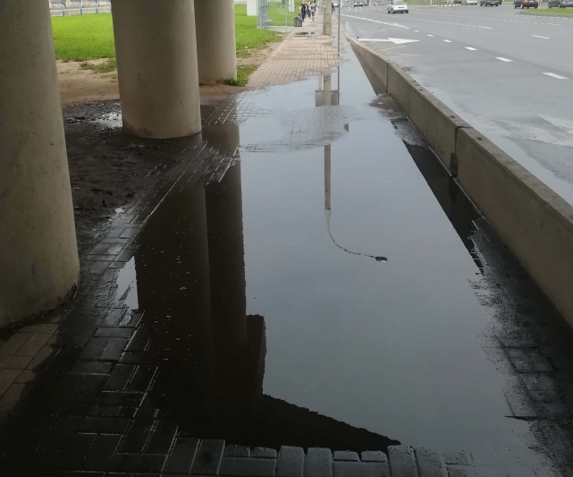 Постоянное подтопление тротуара из-за его просадки и отсутствия адекватного водоотведения