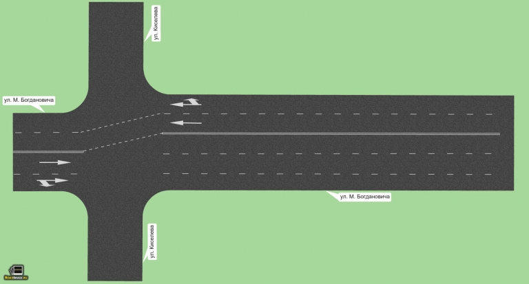 Повысить безопасность и скорость автомобильного движения по ул. М. Богдановича, между ул. Э. Пашкевич и ул. Коммунистической небольшим изменением дорожной разметки