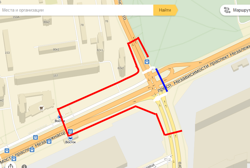 создать возможность перейти пр. Независимости для пешеходов, велосипедистов, инвалидов-колясочников