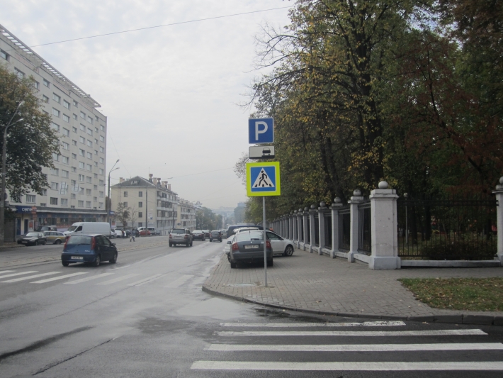 Несмотря на установленные условия парковки параллельно дороге, автомобили паркуются диагонально, загораживая при этом проход пешеходам и велосипедистам.