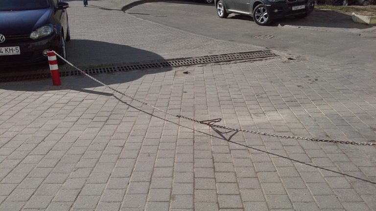 Цепи, препятствующие проезду постороннего транспорта во дворы, расположены на высоте, опасной для пешеходов. В темное время суток они плохо заметны. Знаю из опыта собственного падения.