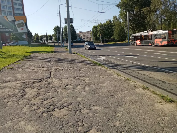 Тратуары на вул. Праўды ў Віцебску (паміж вуліцамі Церашковай і Смаленскай) знаходзяцца ў аварыйным стане. Просім зрабіць неаднакладна рамонт гэтых тратуараў.