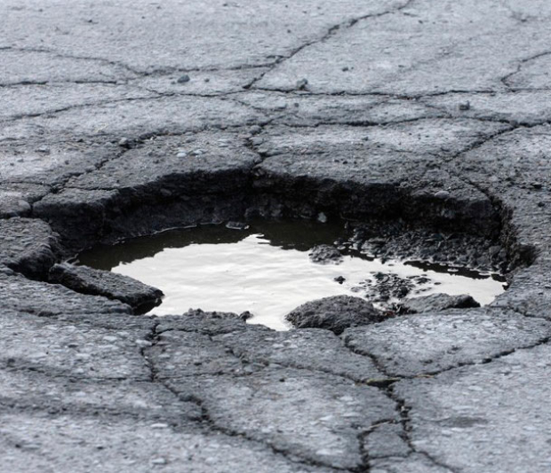 Ямы на дорогах вдоль ряда остановочных пунктов в Гродно были отремонтированы песком, кусками старого асфальта и камнями.