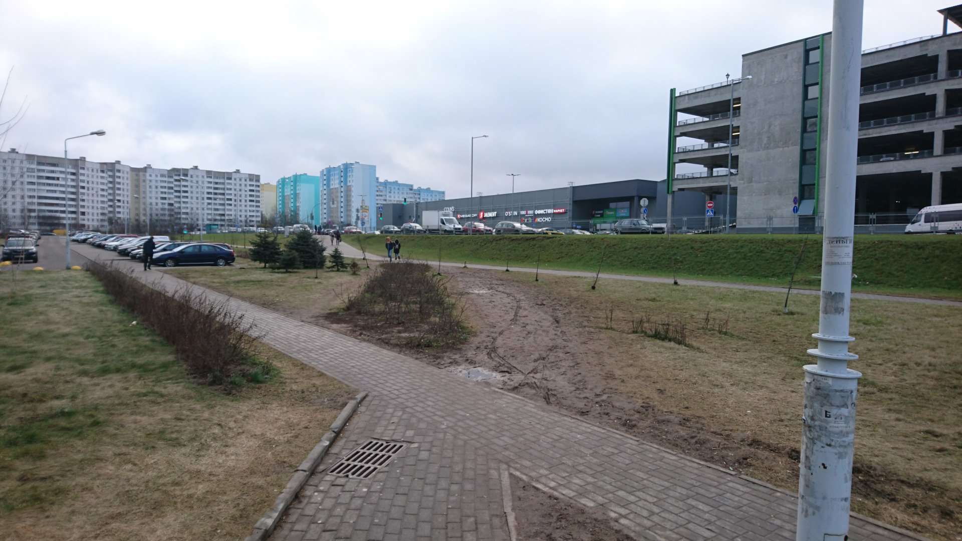 Отсутствие пешеходной дорожки между торговым центром и жилыми домами по ул.Неманская и ул.Кунцевщина.