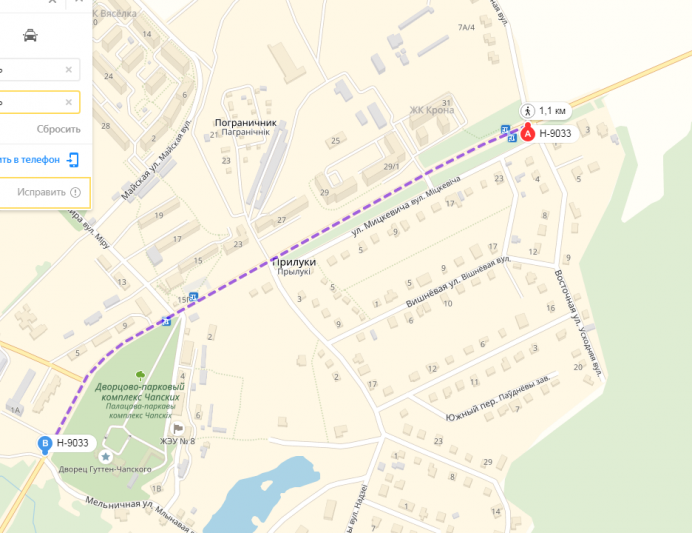 Отсутствие пешеходной дорожки от пересечения улиц Мира и Восточной до пересечения улиц Мира и Мельничной в а.г.Прилуки