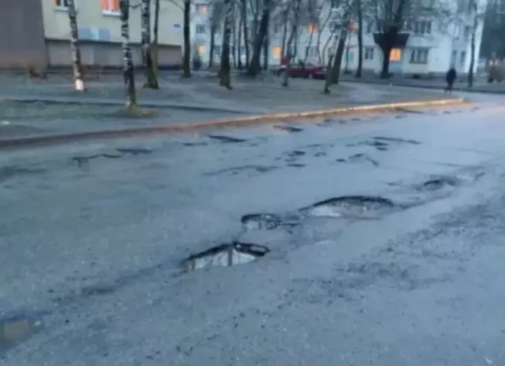 Высокий износ асфальтного покрытия дороги, ограниченной проспектом Черняховского и улицей Чкалова и проходящей между гимназией №5 и детским садом №84 в г. Витебске. Требуется срочный ремонт.