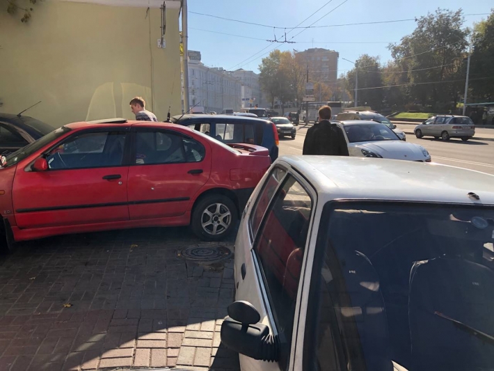 Парковка и езда по тротуару на пр. Пушкина