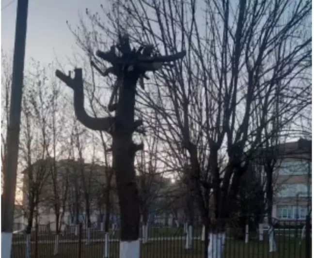 В г.п. Плещеницы Логойского района, на территории оздоровительно центра «Скарб» (ул. Советская 11) предположительно в апреле 2024 г. была проведена обрезка ряда деревьев «под столб» (с полным удалением кроны и верхней части ствола дерева)
